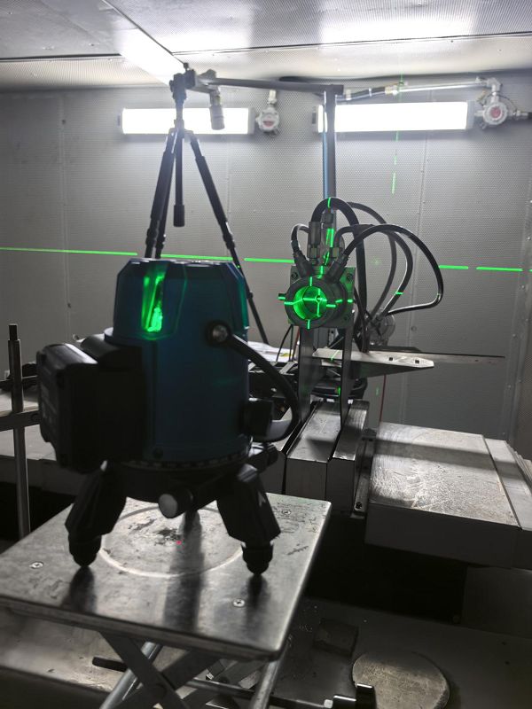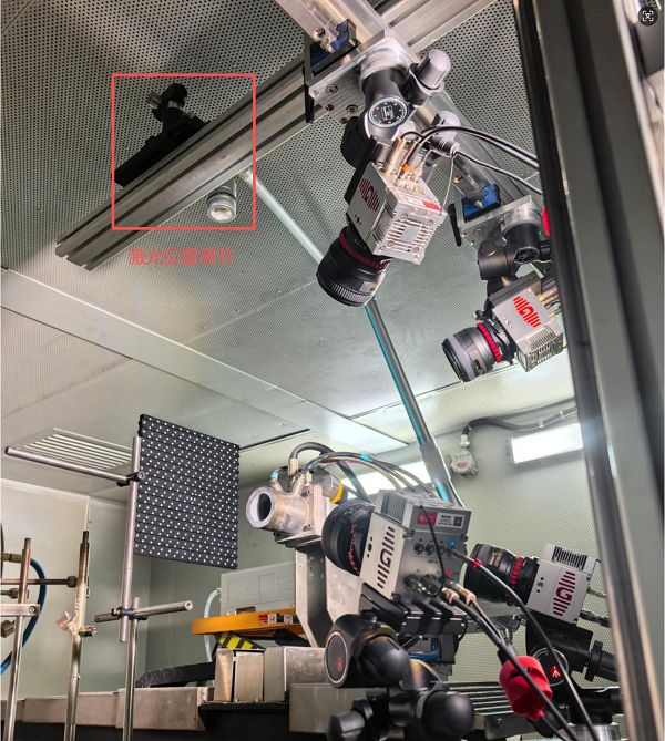 实验首先对燃烧喷口近场测量区域进行光学定位(图3),通过机械基准与激光指示对测量体积中心位置进行精确标定,明确三维测量区域在喷口轴向与径向的空间范围,为后续多相机布置与体测量坐标系统提供参考基准。