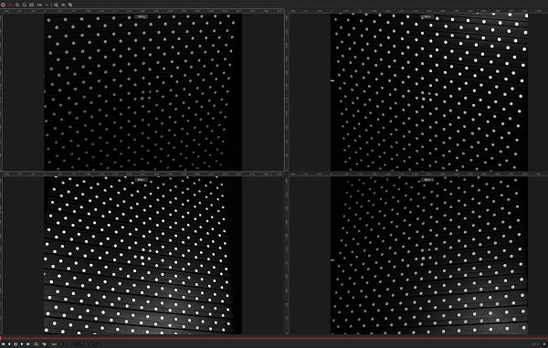 完成标定与误差修正后,对激光器、千眼狼PIV高速摄像机与高速液晶快门的同步时序进行精细化配置,使 PIV 帧对中两帧的有效感光时间保持一致,从而抑制火焰自发光对第二帧成像的影响;在稳定燃烧工况下,各相机从不同视角同步采集示踪粒子图像数据(图10)。