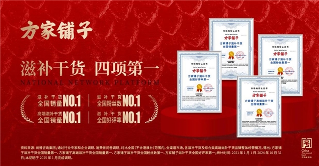 正是这份长期主义的笃定,赢得了一代又一代消费者的持续信赖。截至目前,方家铺子已累计服务超2000万家庭,收获超500万字真实用户好评,连续8年稳居京东滋补干货类目销量第一,斩获“滋补干货全国销量第一、滋补干货全国粉丝数第一、滋补干货全国好评率第一、高端滋补干货全国销量第一”等权威认证,成为品牌价值穿越周期的最好注解。