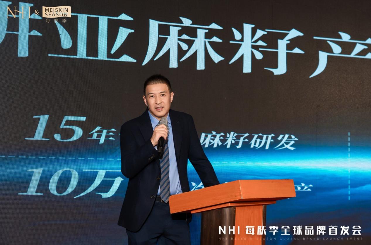 在本次NHI 每肤季全球品牌首发会核心环节,中科中创董事长、NHI每肤季品牌创始人黎坚先生,分享了中科中创15年深耕亚麻籽科研的成果,于去年底,正式推出NHI 每肤季首款独家高活性Omega-3精华油!黎坚先生坦言,面对传统“以油养肤”产品吸收难、见效慢的痛点,NHI 每肤季以独家“增透溶解粒子技术”实现“3秒瞬间渗透”,将护肤体验从表层滋养提升至肌底修护,开启“以油抗老”新篇章。