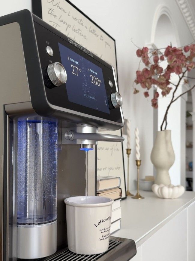 N9Pro 不仅是一台净水设备,更是高端生活方式的重要载体。该机体质感金属机身历经 15 道工艺精铸,雪花纹理与双色主题界面尽显轻奢质感;创新的 氢动力全景视窗 不仅让制氢过程可视化,更支持拆卸清洗,兼顾实用与仪式感;9 寸超大触控屏集成无极调温、定量取水及 6 组自定义功能,从咖啡冲调的精准控温到婴儿冲奶的专属方案,全方位适配高端用户的个性化需求。这种“技术+美学+体验”的三维创新,使其不仅成为净水设备,更成为明星工作室、高端办公场所的“品质标配”。