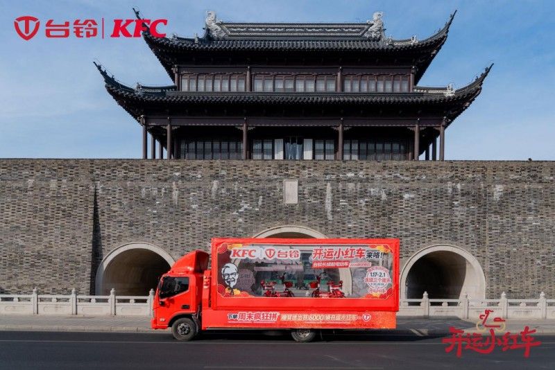 台铃肯德基联名开运小红车以醒目的红白配色为主调,巧妙融合了经典品牌设计元素,成为街头流动的潮流ICON。透明运货车则变身移动好运展馆,载着开运小红车先后闪现上海、苏州等城市街头。这抹满载惊喜与期待的亮眼红色,如同行走的好运信号,从源头一路驶向每位用户的日常。