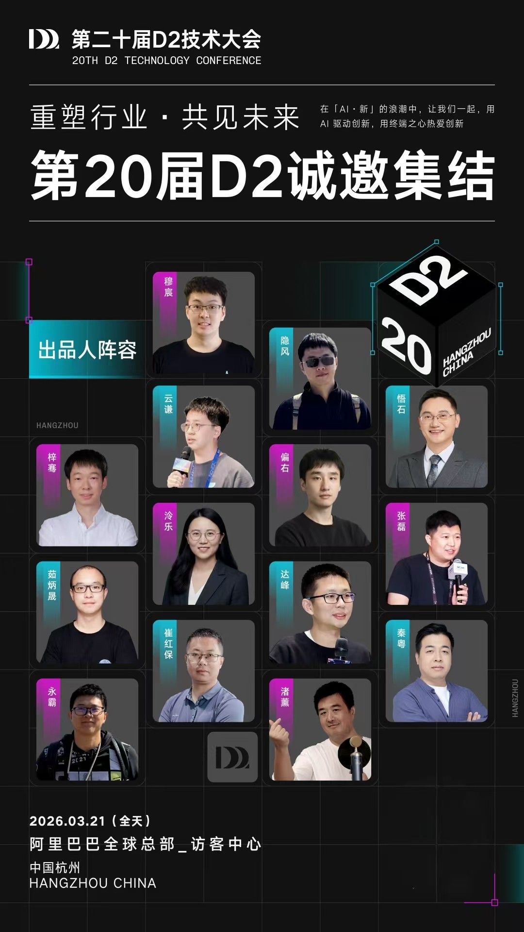 “在 D2,我们致力于将前沿的 AI 实践提炼为系统化的技术范式。我们期待与你一同锚定 AI 时代的工程坐标,让每一份实战洞察都汇聚成定义未来的行业基准。”