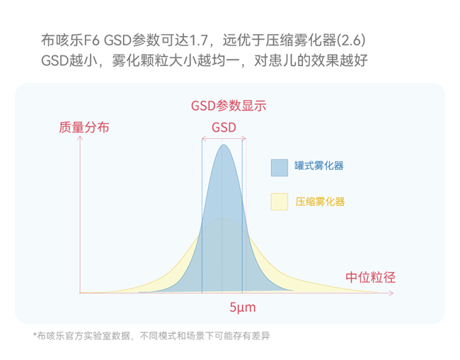 布咳乐F6系列的诞生,正是为了打破这一瓶颈。数据显示,该系列产品的肺部沉积量达到了普通雾化器的4.6倍以上。这一跨越式的提升,确保了更多药雾能够真正穿越呼吸道阻碍,直达患儿肺部病灶,帮助患儿更快恢复健康活力,更多药物都能发挥出应有的治疗价值。