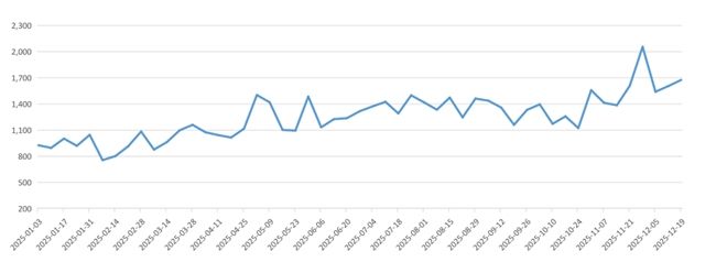 与此同时,大宗商品市场的波动与资源配置效率备受关注。《新华·山东港口大宗商品指数运行报告(2025)》依托山东港口这一全国最重要的大宗商品集散地,发布了该体系涵盖原油、铁矿石、焦炭、钢坯等八大类产品的14只高频指数,通过日、周、月、年多维度数据,精准捕捉大宗商品市场的“脉搏”。报告显示,2025年山东港口原油罐容活跃度指数震荡上行,并在11月28日冲高至2054.64点,较基期涨幅达105.46%,反映出原油存储、流通及远期交易的持续活跃。铁矿石市场虽经历波动,但山东港口铁矿石进出港指数直观反映了市场需求的韧性。此外,硫磺现货交易价格指数受新能源需求崛起及地缘因素推动,在12月11日飙升至全年高点,较年初大幅上涨168.97%,突显了大宗商品市场在能源转型背景下的重新定价逻辑。这些精准、及时的数据,有效提升了市场透明度,为产业链上下游企业的决策提供了关键参考,增强了中国在大宗商品领域的定价影响力。