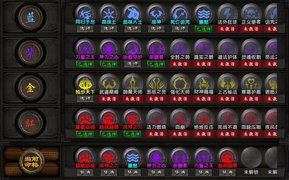在玩家升到50级后,就能解锁命格系统了,之后每隔50级获取一个新的命格槽,300级后还需要通过转生、渡劫等要求来解锁更多命格槽。游戏中的命格等级按照蓝金紫红四种来分类,每次获取新命格槽时能免费抽取一次命格,后续抽取要消耗命格石。另外,命格抽取拥有30次的保底机制。