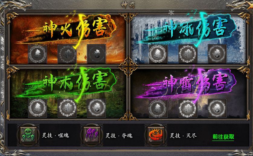 有了英灵助阵,还有更高阶的“神罚”为玩家扫平障碍。神罚系统包括属性加成和对应属性的神属性伤害和神罚必杀技,通过神罚装备来解锁强大的效果。比如神火能概率为玩家的目标附加灼烧buff和最终伤害;神冰能概率给玩家的目标附加冰冻buff,玩家复活甚至有概率重置复活CD,让战斗难度大大降低;还有神木、神雷等神罚,个个都藏有惊喜,是玩家们不可不追求的豪华配置。这些神罚装备需要靠神罚试炼来获取,击败了5个试炼boss就有概率掉落神罚装备和仙令玄晶,仙令玄晶可以直接提升神罚装备阶级。如果有多余的神罚装备还能分解成神罚玉石,用来进行神罚装备的进阶。