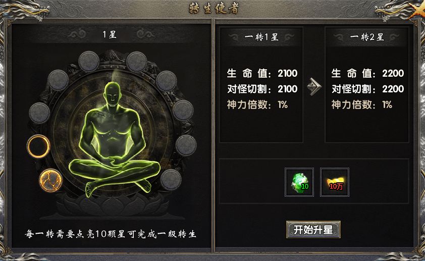 转生顾名思义,就是玩家想要进入新大陆的必经之路,每一次转生也意味着新的属性加成;切割法宝不但能增加对怪切割属性,还会随着提升每一阶段星级而激活首刀斩杀的百分比效果。