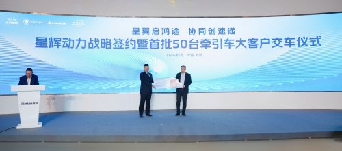 据了解,此次星辉动力战略签约暨首批50台牵引车交车仪式的举行,欧曼重卡及北京鸿翔双方将发挥自身技术、资源等优势,围绕高质量发展路径共同探索快运干线运输的降本增效最优解,提供可复制、可借鉴的“装备制造商+物流企业”协同发展新范式,为整个物流行业的转型升级注入强大动能,共同开启产业共赢新局面。