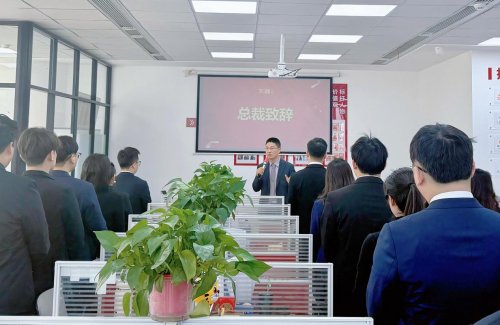 第一大区总经理任远在致辞中对泰州分公司的乔迁表示热烈祝贺。他勉励泰州分公司的伙伴们要敢想敢干,锚定目标,围绕重点产品及重点资源做拓展,保持奋斗姿态,不断提升专业素养,在新职场中携手共创佳绩。