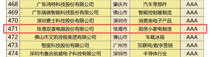 近日,在广东省企业品牌建设促进会等权威机构联合发布的“2025广东品牌全球竞争力500强”名单中,珠海双喜电器股份有限公司凭借稳健的市场表现、持续的创新能力和逐步提升的全球影响力,荣耀上榜,获评AAA及以上竞争力等级。