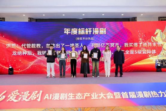 首届“漫剧热力榜”设置五大类别共计10大奖项,覆盖作品、企业、技术、创作等维度。《龙绝种后,我转职成驯龙师》《斩仙台下,我震惊了诸神!》等获评“年度标杆作品”,友和文化、阅文集团等获“年度影响力企业”,商汤科技Seko2.0、昆仑万维SKYREELS等技术方案入选“年度技术创新奖”。活动组委会首次提出行业盛典,为漫剧行业奠定了行业标杆,坚守内容品质,推动产业健康发展。
