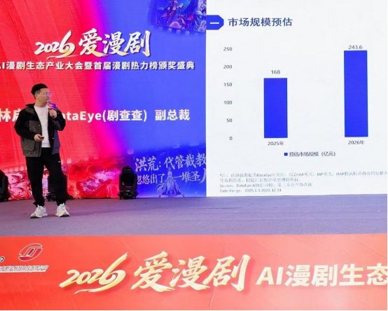 主办方北京剧头科技文化有限公司负责人唐朝指出,AI技术的突破正在重构漫剧生产逻辑,2.0时代的核心在于“降本增效与IP孵化双轮驱动”。他强调,企业将联合产业链伙伴共建开放生态,推动漫剧从“流量产品”向“长效IP”升级。协办方DataEye(剧查查)副总裁林启文则通过数据洞察指出,2025年国内漫剧市场规模突破80亿元,用户日均观看时长增长35%,AI技术对内容生产效率的提升达40%以上,“技术+内容”的深度融合成为行业破局关键。