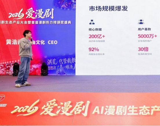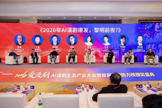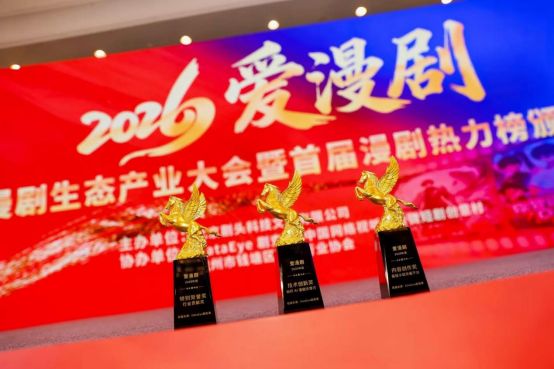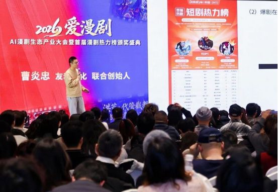 2026年1月27日,由北京剧头科技文化有限公司主办,DataEye剧查查、中国网络视听协会微短剧创意村、杭州市钱塘区视听行业协会等作为协办单位,由DataEye剧查查进行的独家数据支持,“爱漫剧2026年AI漫剧生态产业大会暨首届漫剧热力榜颁奖盛典”在杭州市钱塘区盛泰开元名都大酒店举行。来自全国漫剧创作、技术研发、内容运营等领域的千余名行业代表齐聚,共同见证AI漫剧从1.0向2.0时代的跨越,为数字文化产业高质量发展凝聚共识。