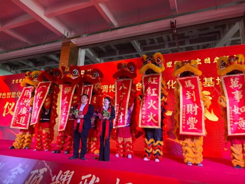 盛典的高光时刻,封顶启动仪式正式举行。谢丽美董事长与各位领导、嘉宾共同手持金锹,将象征着吉祥与希望的最后一方混凝土缓缓浇筑到位,标志着雅顿空调博罗新基地主体结构正式完工。同步举行的双狮点睛仪式,朱砂落笔,祥瑞临门;高桩采青环节,雄狮腾跃,吐出“封顶大吉”的喜庆横幅,现场掌声雷动,气氛推向高潮。仪式尾声,与会领导与嘉宾共同为封顶纪念牌揭幕,无人机升空定格全体参与者合影,将这一历史性时刻永久留存。