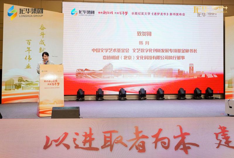 发布会现场,中国文学艺术基金会文艺数字化创新发展专项基金秘书长、嘉德明诚公司执行董事韩月女士在致辞中强调:《逐梦龙华》不仅仅是一部纪实文学著作,更是一卷镌刻于时代长卷之上的精神史诗。龙华人以煤为基,却不止步于煤;扎根神木,却胸怀天下。他们从“黑色资源”中挖掘绿色潜能、转化“绿色动能”,在传统产业的沃土上孕育创新基因、激活发展新篇。这条转型升级、高质量发展的道路,正是中国式现代化在企业层面的生动诠释。