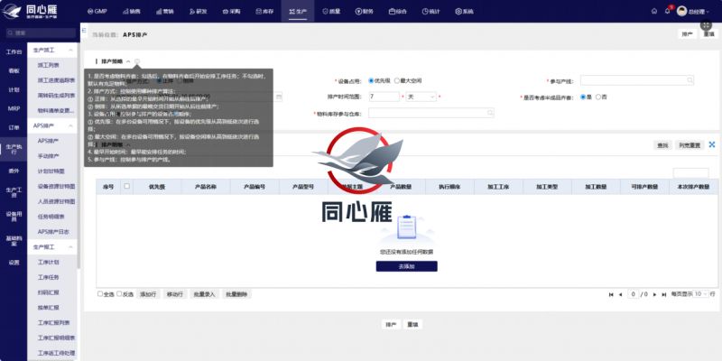 生产排产是医疗器械企业运营的核心枢纽,不仅关乎交付效率与产能利用率,更直接关联生产合规性。传统排产模式依赖人工经验,难以兼顾订单优先级、合规工艺约束、设备校准状态、物料批次适配、人员资质要求等多重行业特殊因素,容易出现排产计划不合理、生产流程混乱等问题。同心雁S-ERP系统实现生产计划的自动化、精准化制定与动态调整,平衡订单需求、产能约束、物料供应与合规要求,最大化提升产能利用率与订单交付效率,同时坚守合规底线。
