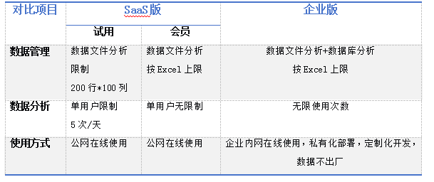 SaaS版和企业版产品对比如下: