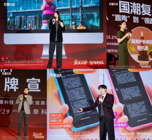 巨星传奇集团大健康产业线CEO张宇晟现场补充了集团在2026年的赋能规划,表示将深化大健康领域爆品布局,通过数据驱动精准匹配用户需求,推出更具科技创新的IP产品矩阵,并持续加强合规运营与技术保障,为平台伙伴提供更坚实的后盾。