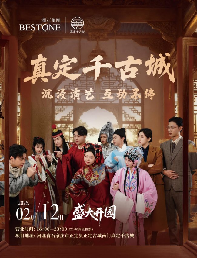 夜享光影盛宴,共赴千年之约。当正定古城的历史烟霞与现代光影艺术交汇,一场跨越时空的沉浸之旅,即将在这座国家历史文化名城的南门之下,绚烂启程。2026年2月12日(农历腊月二十五),备受瞩目的“真定千古城沉浸式夜游”项目将正式面向公众开放。该项目由润石集团倾力呈现,坐拥300亩云居湖生态画卷,深度融合正定“燕南古郡、京师屏障”的千年文脉,旨在打造一个融历史深度、文化互动与光影美学于一体的夜间文旅新标杆,为正定古城夜景再添隽永一笔,深入回应公众对高品质文化体验的追求。
