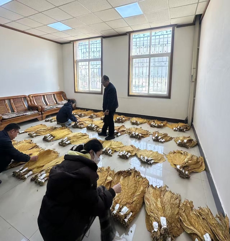 烟叶分级是复烤生产的关键环节,直接影响烟叶品质定级和工业端适配性。听说今天仓储分选房要制作烟叶样品,小程早早就来到分选办公室。小程是陆良复烤厂今年新进的员工,她对烟叶分级非常感兴趣。“你看,这片摸起来像牛皮纸一样的烟叶就是光滑叶”潘师拿起一片淡黄色烟叶耐心地对小程说道。在老员工潘师的带领下,小程反复对比不同等级烟叶的叶形、脉向、颜色,仔细揣摩分级技巧。“之前我只在书上学习烟叶分级的理论知识,今天真正上手摸烟叶,发现书本理论与现场实操的细节差异,还需在反复实践中不断摸索呢。”小程感慨道。