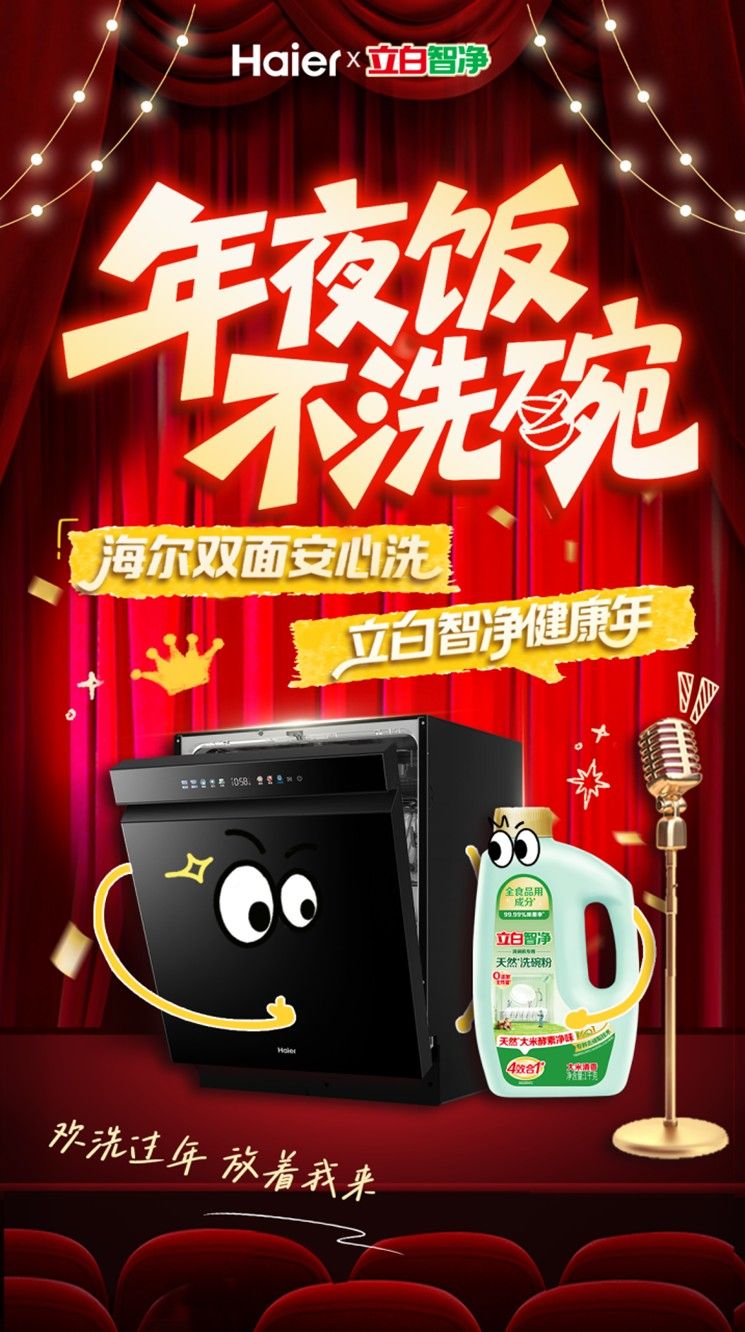眼下正值欢庆新春之际,“大扫除”、“团圆聚餐” 成为家家户户的核心议题,但刷洗碗碟的家务更加繁重,饮食健康也备受重视。为了让广大都市品质家庭人群更加轻松、安心的过节,2026 年 2 月 6 日,立白携手家电巨头海尔,于抖音、天猫、京东多平台开启 “海尔双面安心洗,立白智净健康年” 线上直播活动,以“专业洗涤剂+专业洗碗机”的协同姿势,奉送真正完整的高品质健康清洁解决方案。
