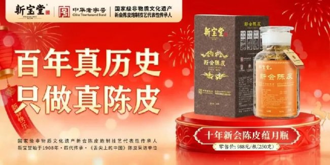 2026马年新春,新宝堂以 “陈香贺岁,马到安康” 的美好寓意,成为京城年货市场中熠熠生辉的新星。这家百年品牌不仅将一片陈皮打造成跨越百年的品牌传奇,更让新会陈皮炮制这一非遗技艺在现代生活中焕发出新的生机。从新会柑种植基地到首都的核心地标,从非遗工坊到北京地铁的流动巡展,这份新会陈皮承载的,不仅是岭南风物独有的道地养生风味,更藏着国人对 “健康团圆” 的新春美好期许。