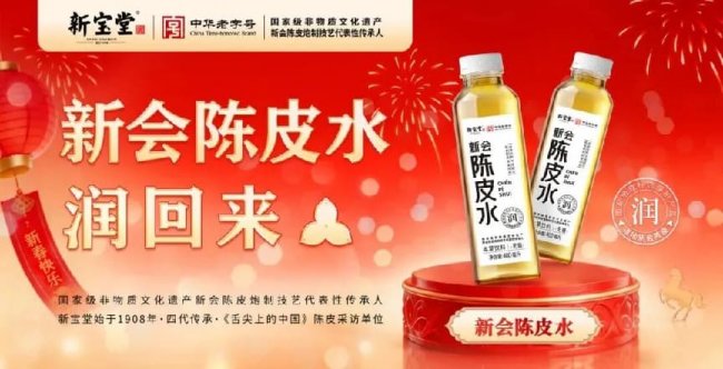 一句 “陈皮水,润回来!” 道尽这款饮品的核心魅力。新宝堂陈皮水配料纯粹无添加,温润的口感让人回味无穷,不仅让消费者买得放心、喝得安心,更让这缕岭南陈香,在国贸的高端商圈中成为彰显生活品味的养生符号。无论是赠予长辈,传递温润护肺、健脾养胃的贴心关怀;送给朋友,分享 “随身养生、便捷滋润” 的新潮生活方式;还是留予自己,在忙碌的新春时节守护身心舒适,新宝堂陈皮水皆以 “可饮用、可礼赠” 的双重属性,诠释着年货的深层意义,让温润滋养伴人度过马年四季。