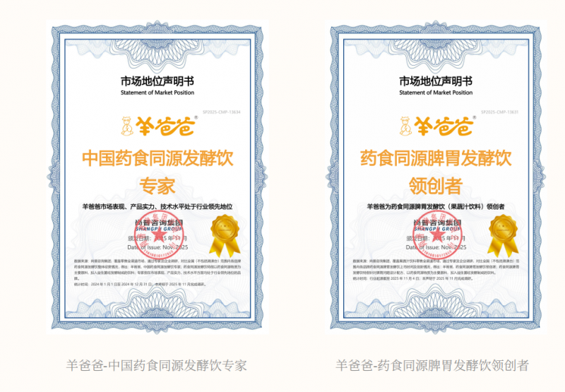 * 羊爸爸产品品类荣获多个市场地位认证。
