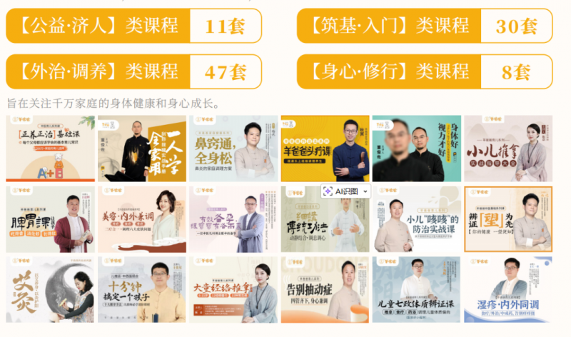 * 在中医文化传播的基础上开设从儿童调理到成人养生的系列课程,并结合线下实操、考证营及寒暑假冬夏令营,推动中医知识普及与应用。