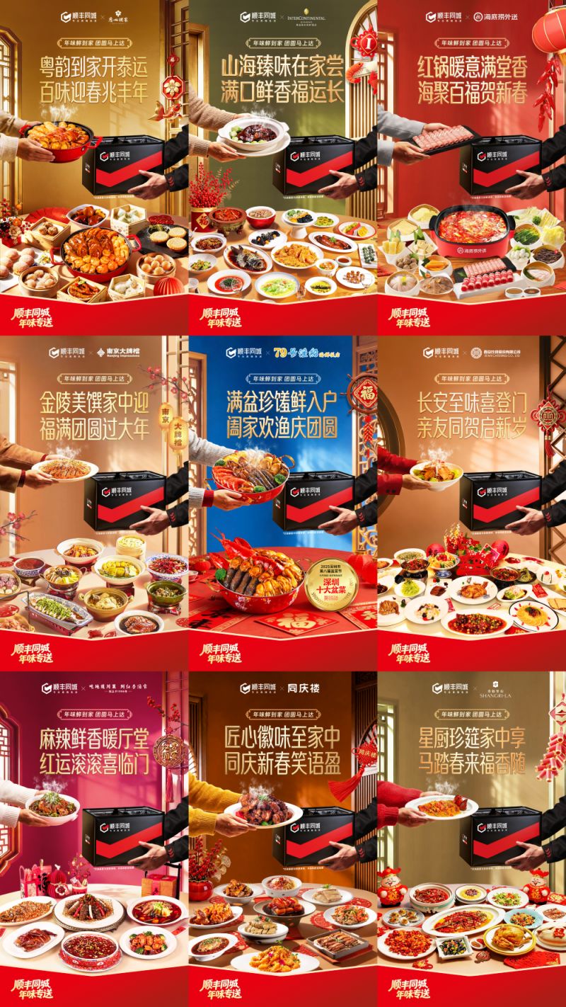 此外,在堂食年夜饭“一桌难求”的背景下,年夜饭外送加速走进千家万户。顺丰同城已连续6年推出“年味专送”服务,联合海底捞外送、同庆楼、广州酒家、香格里拉酒店等全国知名餐饮品牌,以定制化、高品质的配送服务,将各地地道年味及酒楼品质体验延伸至家庭餐桌,推动“独享专送”服务中餐配送单量大幅增长。