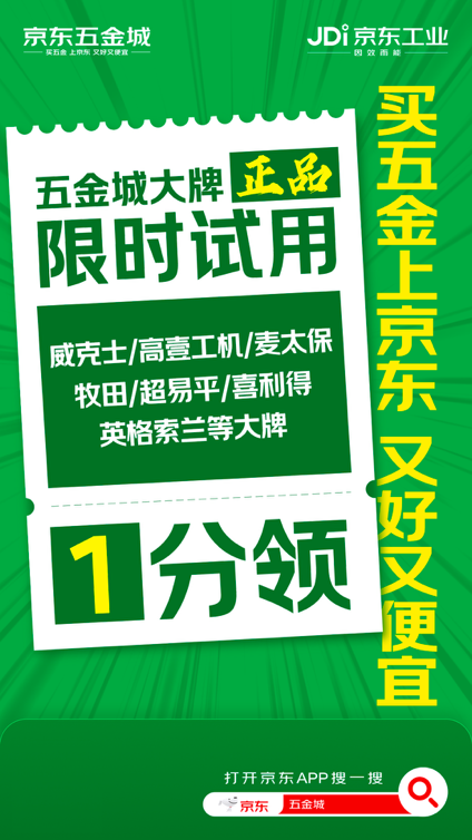 京东五金城是京东工业面向小微企业和更多用户打造的专业可信赖一站式工业品购物平台,以“买五金上京东,又好又便宜”为核心承诺,汇聚众多一线大牌正品,品类覆盖专业师傅日常作业的各类需求,更凭借数智化采购能力,让工具采购更便捷、品质更有保障。此次开工季的两大福利活动,更是精准直击专业师傅的工具采购痛点,以贴心的服务和实在的优惠,为师傅们开工保驾护航。