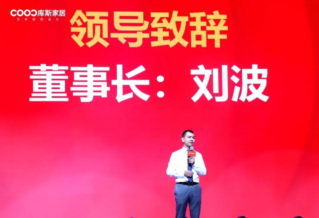 音乐声落,库斯家居董事长刘波先生上台为本次春茗晚会致词。刘波先生首先向全体辛勤付出的员工及一直以来支持库斯发展的合作伙伴们致以诚挚的新春问候与感谢,回顾过去一年公司取得的辉煌成就,并郑重宣布——库斯家居科技产业园正式投入运营。刘波先生介绍,新产业园配备了全新的展厅与现代化的办公环境,同时拥有更加广阔的生产产区,将大幅提升产能与交付效率,为库斯家居的高质量发展注入强劲动能。