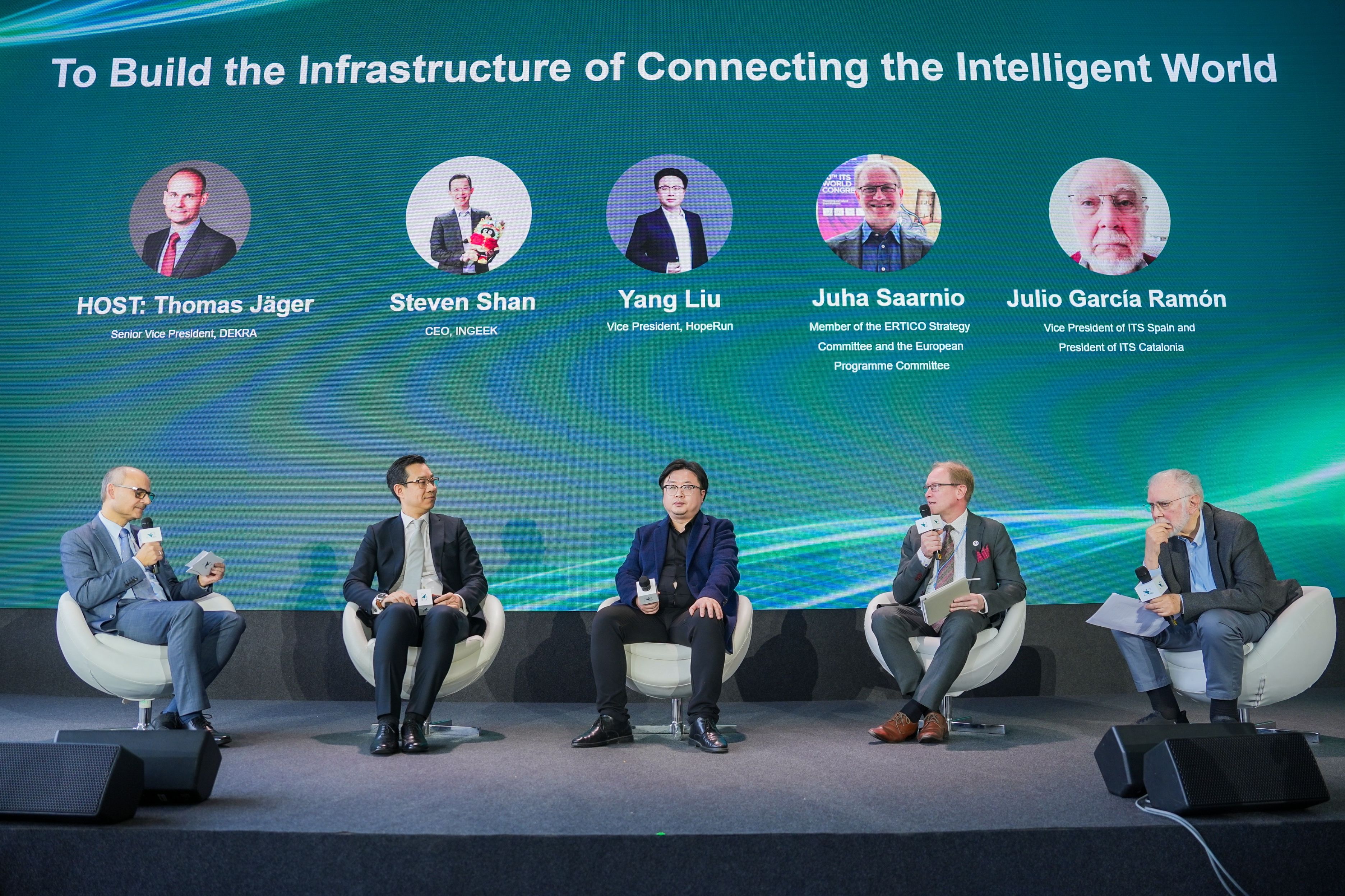 启动仪式后,在德凯高级副总裁Thomas Jäger的主持下,银基科技联合创始人&CEO单宏寅、润和软件副总裁刘洋、欧洲智能交通协会战略委员会兼欧洲项目委员会委员Juha Saarnio、西班牙智能交通协会副主席&加泰罗尼亚智能交通协会主席Julio García Ramón4位代表以构建智能世界的连接基础设施为核心,围绕“为何连接技术是 AI 与智能设备的基础设施”、“星闪如何助力智能世界基础设施建设”两大核心问题展开深度对话。