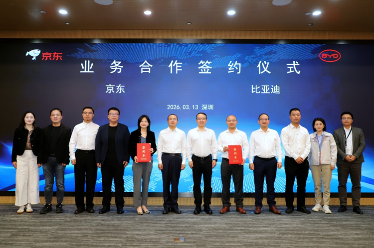 3月13日,京东与比亚迪在深圳正式签署业务合作协议,并为双方合作的全国首家闪充站进行剪彩。比亚迪对公事业部、京东政企业务、京东汽车、京东创新零售、京东七鲜咖啡、京东支付等部门相关负责人共同见证出席。