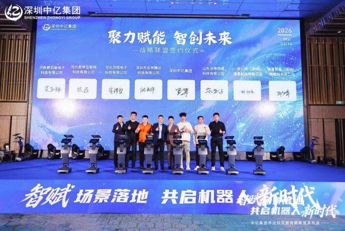 【深圳讯】3月14日,深圳中亿集团乔迁暨战略联盟发布大会在深圳市南山区李宁中心举行。大会以"智赋场景落地·共启机器人新时代"为主题,集中呈现中亿集团在机器人超级连接、群体智能调度平台及产业生态合作方面的阶段性成果,并正式发布机器人产业生态合作计划。