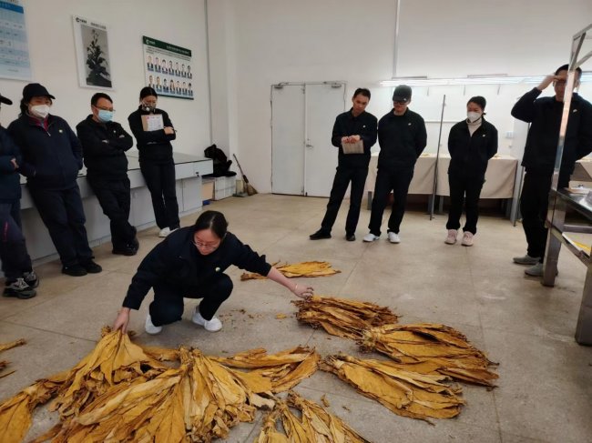 向青年员工传授烟叶评级经验