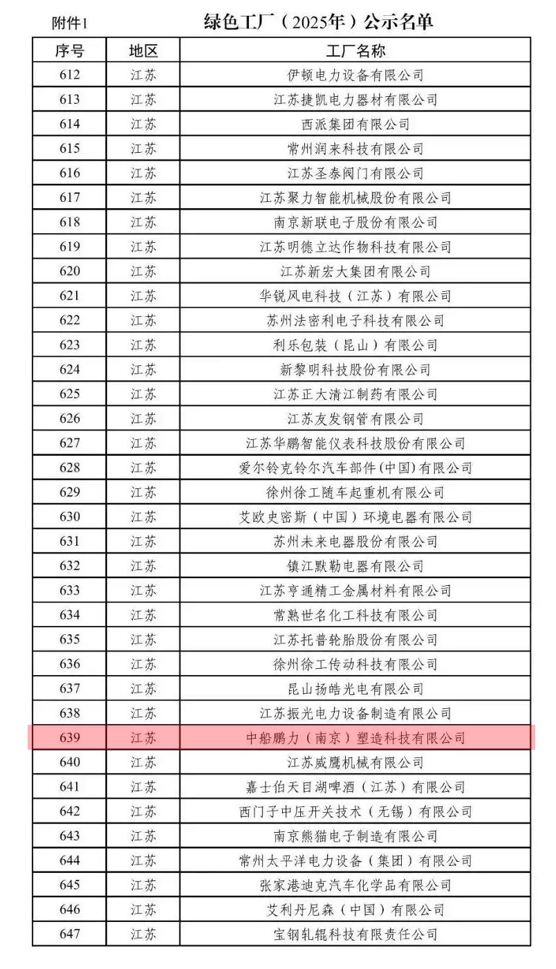 3月18日,工业和信息化部公布绿色工厂、绿色工业园区(2025年度)名单,鹏力塑造凭借在绿色制造领域的优异表现,成功跻身国家绿色工厂行列。这是公司继国家级制造业单项冠军企业后,斩获的又一项国家级殊荣。