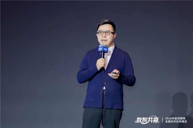 峰会在开场视频之后正式拉开帷幕。找钢网集团创始人、董事长兼CEO王东率先发表主题演讲,围绕“钢铁流通发展趋势及找钢AI转型之路”,系统回顾了找钢网2025年的成绩,深入研判行业六大趋势,并全面阐述了找钢网从交易撮合平台向AI驱动的全链路科技服务平台转型的战略路径。