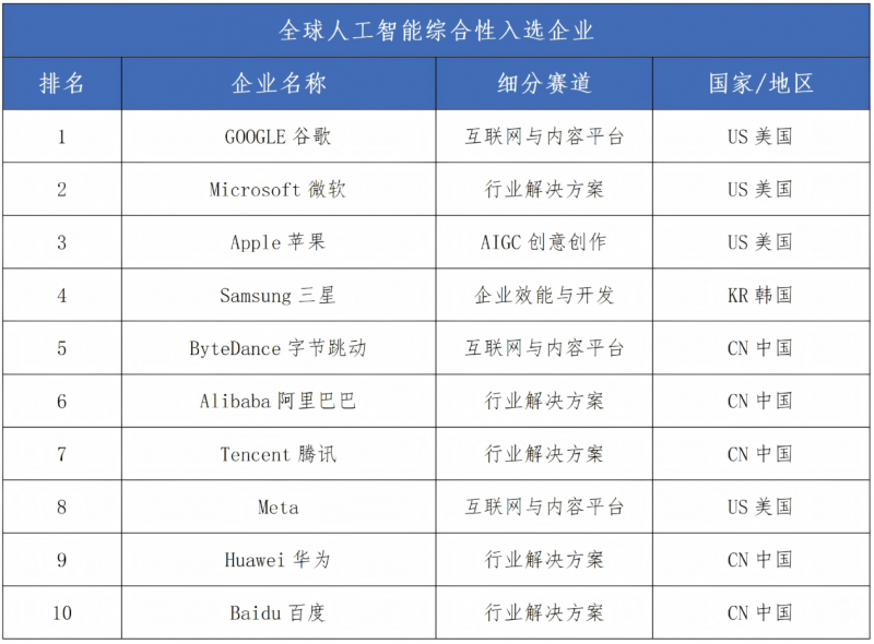 应用层企业数量最多,共40家,是AI产业商业化的核心环节,其中中国入选21家,场景落地能力突出。