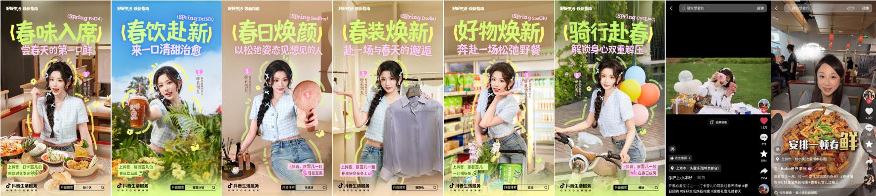 循着代言人的春日足迹,抖音生活服务将这份春日灵感落地为六大场景清单,搭配平台专属团购优惠,让每一份对美好的向往都能轻松实现,不用费心比价,一键畅享春日小确幸。