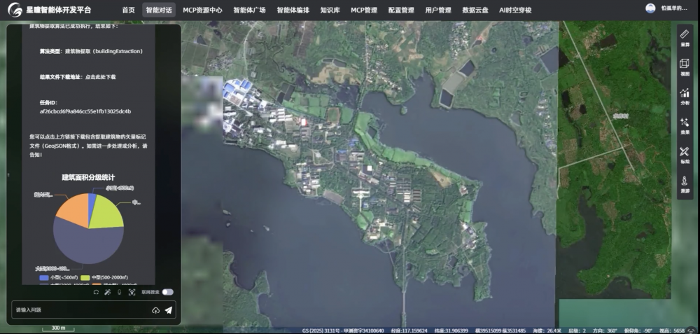 面对洪涝或地质灾害,指挥调度系统可直接调用智能体的“变化发现与GIS空间分析”技能。无人机数据传回后,系统自动解析受灾面积、受损道路,并辅助生成救援路线决策,将研判时间从过去的以“天”算,缩短至“分钟”级。