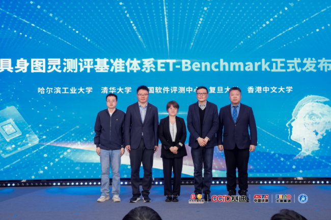 仪式上,国内首个覆盖多形态具身智能机器人的系统性测评基准——具身图灵测评基准体系ET-BenchMark重磅发布。该体系由中国软件评测中心联合清华、复旦、哈工大、港中文等多所顶尖高校共建,填补了测评领域的空白,为机器人技术研发、产品迭代、产业升级提供权威度量标尺与核心技术支撑。
