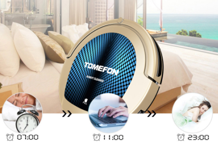 斐纳TOMEFON扫地机器人多项人性化功能的添加使其更加专业、智能,不但能够机智的躲开障碍物,识别高于5cm的落差防止跌落损坏,遇到电线及杂物缠绕,也能在短时间内脱离困境。除此之外,斐纳TOMEFON扫地机器人还有定时预约的功能,可以避开工作和休息的时间,避免被工作中的扫地机器人打扰。