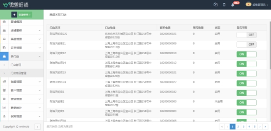 连锁门店的日常运营中常面临门店管理成本高、渠道管控难、操作效率低等问题。通过微盟旺铺多门店系统,直营连锁商家可生成多个在线门店,每个门店都配有独立的在线商城,总店可对门店信息、商品、订单、会员、财务、物流、营销和门店权限进行统一管理。例如,通过商品管理功能,总店可统一上传商品,并设置价格区间,以此解决连锁门店在经营中所遇到的商品种类多、门店定价难把控等难题。