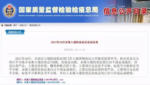 2017年9月,根据国家质检总局最新发布的9月份未准入境的食品信息显示,此次不合格乳制品多达50批次,包括来自韩国和澳大利亚的18批次婴幼儿配方奶粉、某大品牌成人奶粉,这些未准入境的乳制品共重74.8吨,均已在口岸退运或销毁。