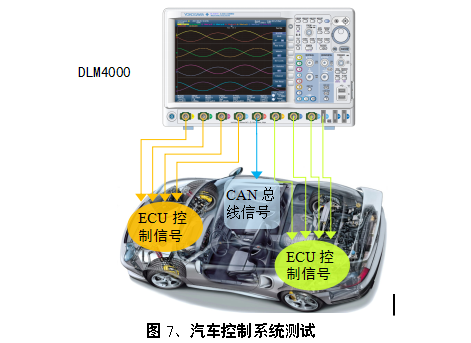 在汽车的ECU控制系统测试时,需要同时记录4路以上ECU控制信号的波形细节(波形宽度最小10ns)、多路转速、喷油脉冲、曲轴转角等传感器信号,有时会同时进行CAN总线的解码分析。