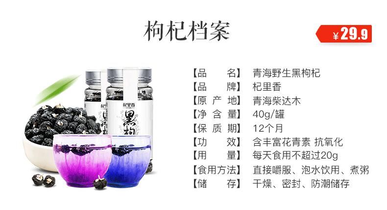 说到天价黑枸杞,杞里香官方旗舰店售卖的黑枸杞来源于青海柴达木野生采摘,营养价值比一般黑枸杞高出3倍,40g黑枸杞仅售29.9元,月销23万件,现在购买还可享第2件0.01元,需要的可以现在入手,点击购买>>