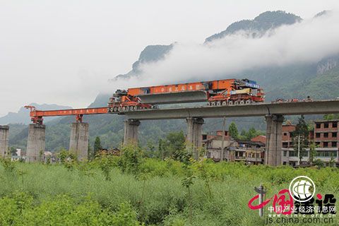 中铁三局西成客专10标WE-SC900H型运架一体机运梁到达桥头对位