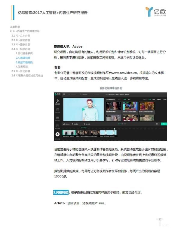 AI剪辑视频多处于研究,目前只能生成资讯类的视频框架,由人再编辑。专业视频编辑领域还没有实际应用。